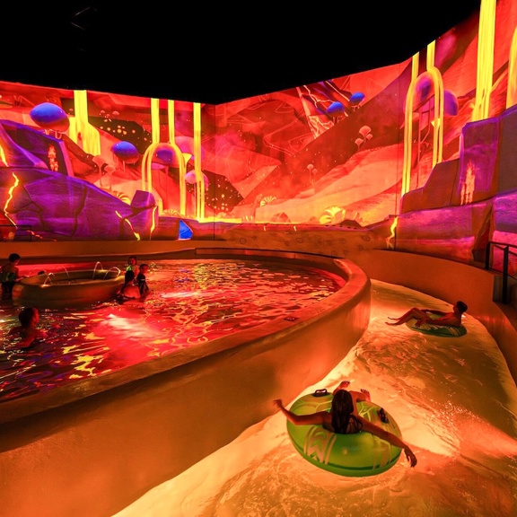 This 6,000 m² indoor water park at Futuroscope combines technology with themed aquatic environments. High-speed slides, immersive zones, and a unique aquatic cinema surround swimmers with large-scale projections, offering students a dynamic example of digital media, engineering, and interactive entertainment design.